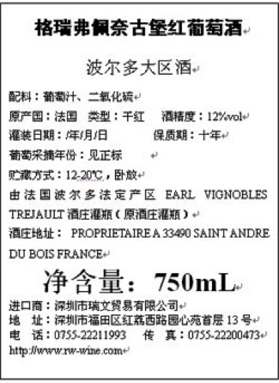 De plus pour le vin importé en Chine, chaque bouteille doit être contre-étiquetée. Cette contre-étiquette doit obligatoirement comporter certaines informations en chinois pour décrire le produit et doit être visée par l’administration chinoise afin d’obtenir un « certificat d’approbation de l’étiquette ». Dans la pratique, les contre-étiquettes affichant les mentions sont apposées à l’arrière du produit. C’est l’importateur qui est en charge des formalités des contre-étiquettes car elles exigent une très bonne connaissance de l’administration chinoise et des nombreuses démarches à effectuer. Les contre-étiquettes sont soit envoyées puis éditées à l’étranger pour étiquetage au départ des produits, soit apposées à leur arrivée en zone de douane par l’importateur ou l’agent. La nouvelle norme laisse cependant entendre que la contre-étiquette devrait être intégrée au packaging, ce qui suppose de l’exportateur de prévoir un étiquetage particulier pour le marché chinois.